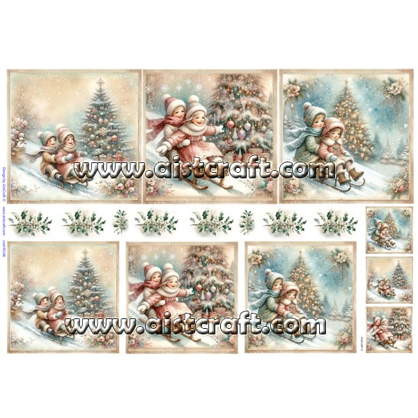 Carta di riso è disegnata e stampata da AistCraft ©. Molto resistente, può essere utilizzata per tutte superfici e di qualsiasi forma. Si applica con la colla per decoupage. 28g