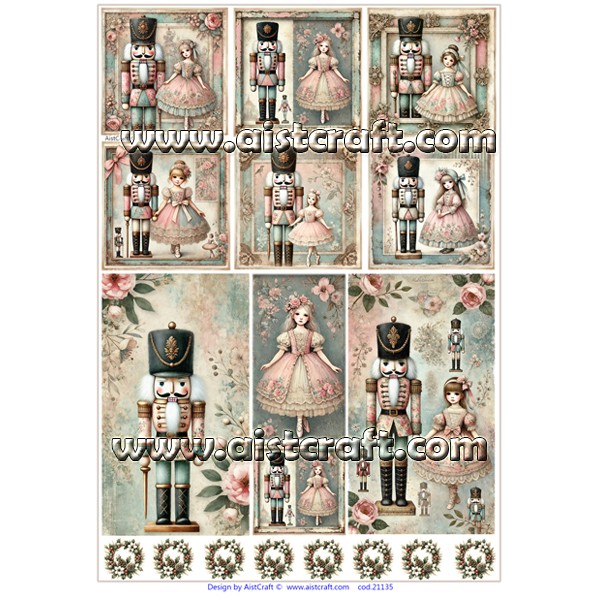 Carta di riso è disegnata e stampata da AistCraft ©. Molto resistente, può essere utilizzata per tutte superfici e di qualsiasi forma. Si applica con la colla per decoupage. 28g