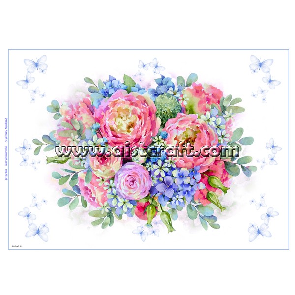 Carta di riso è disegnata e stampata da AistCraft ©. Molto resistente, può essere utilizzata per tutte superfici e di qualsiasi forma. Si applica con la colla per decoupage. 28g