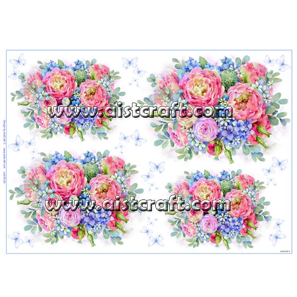 Carta di riso è disegnata e stampata da AistCraft ©. Molto resistente, può essere utilizzata per tutte superfici e di qualsiasi forma. Si applica con la colla per decoupage. 28g