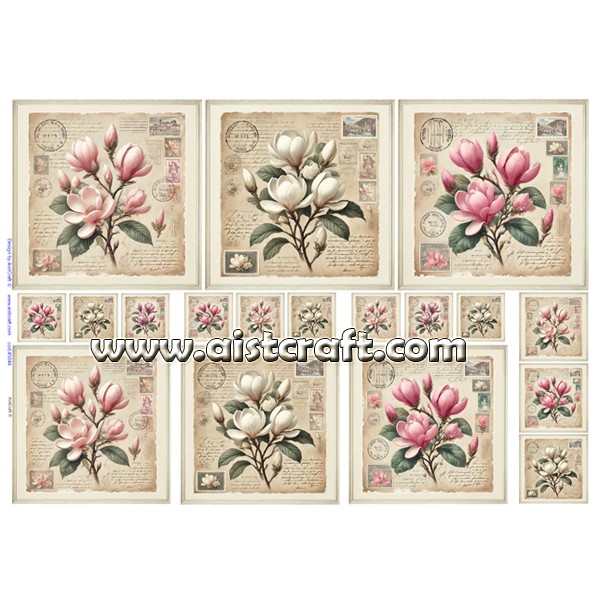 Carta di riso è disegnata e stampata da AistCraft ©. Molto resistente, può essere utilizzata per tutte superfici e di qualsiasi forma. Si applica con la colla per decoupage. 28g