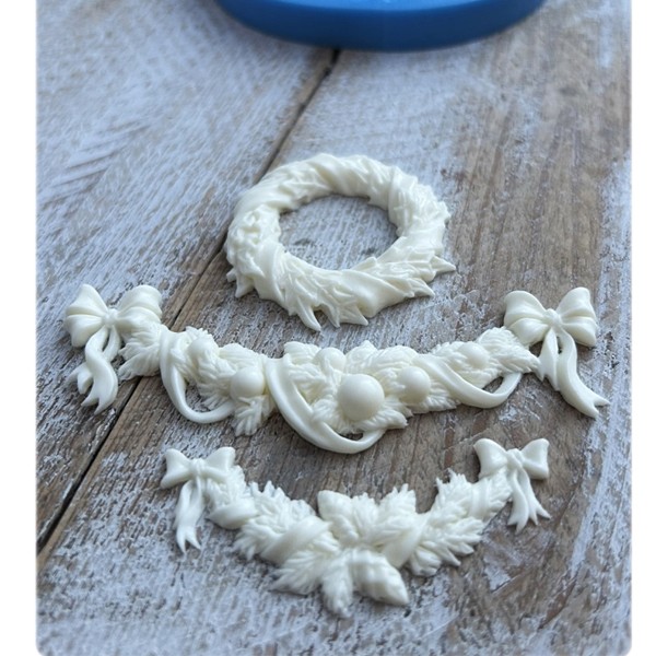 Dimensioni dell'impronta - Diametro della corona 4,5 cm, spessore 0,6 cm, ghirlande 9,5x3,3 cm e 6x2,6 cm